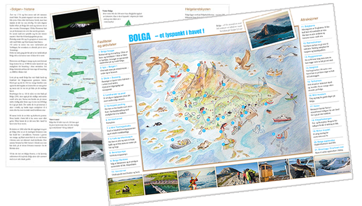 Lokale translatørar oversatte tekstane til tysk og engelsk, og kartet kan no hentast på biblioteket i Ørnes, hjå handelsmannen på Bolga og sjølvsagt på Bolga Brygge! Eit absolutt must når du skal besøke Bolga for ein dag eller ti – om eg må seie det sjølv ;-)
